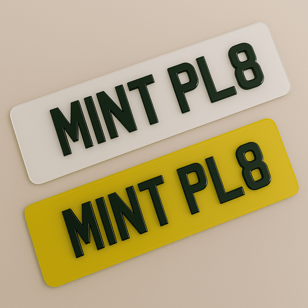 Choose Mint Plates for sleek, professional craftsmanship and fast UK delivery — because every detail counts when it comes to making your car stand out.